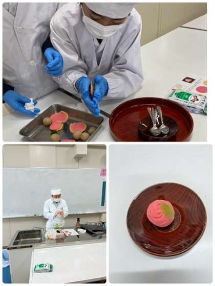 今日は、5年生が和菓子作りの体験学習をしました。