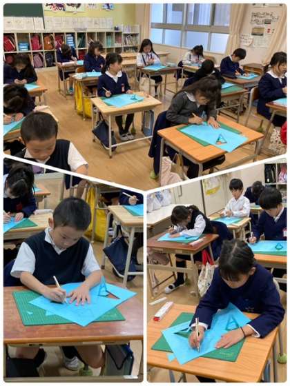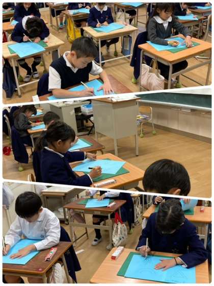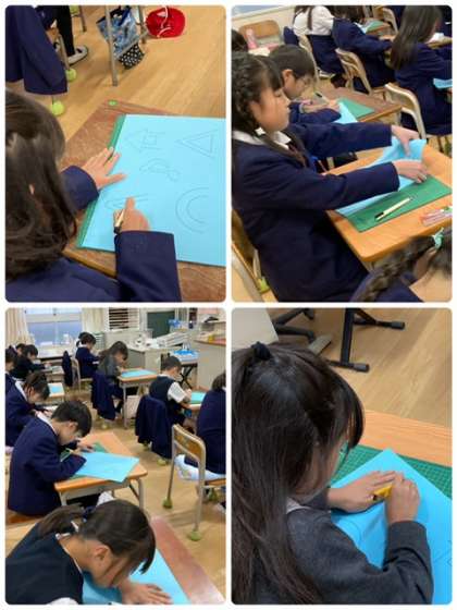図工科の時間に、カッターを使って絵をくり抜きました。慎重に慎重に、取り組みました。