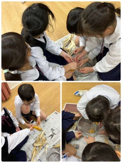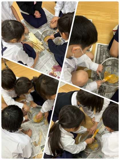 1年2組 ポップコーン取り