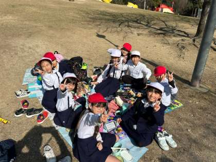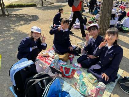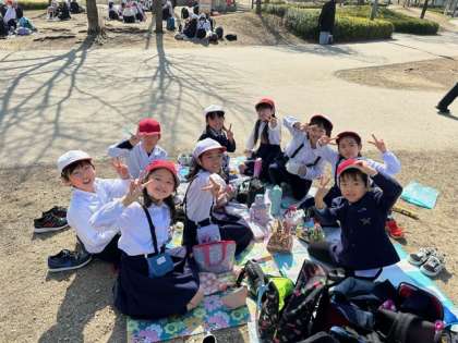 館内の見学を終えて、前にある扇町公園でお弁当を食べています。
