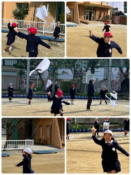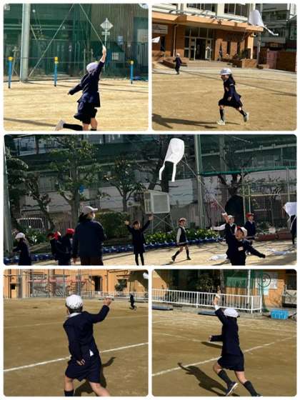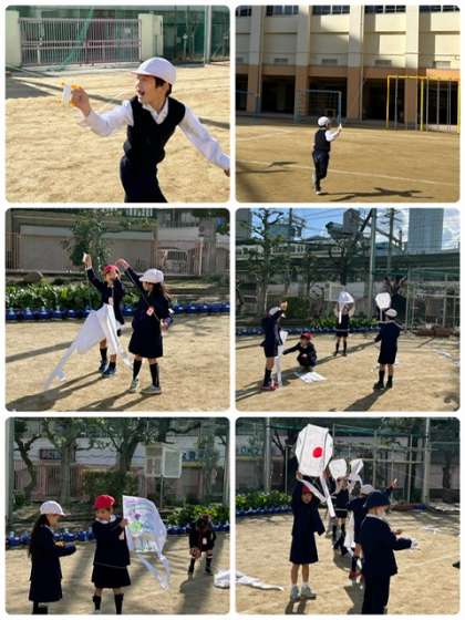 生活科の学習で、凧上げをしました。風も吹いており、綺麗に凧が飛んでいました。