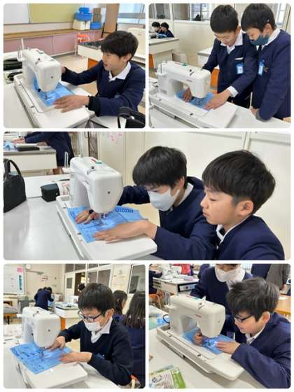 ミシンを使って実習をしています。
