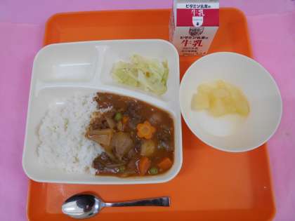 今日の給食のハヤシライスにラッキーにんじんが入っていました。