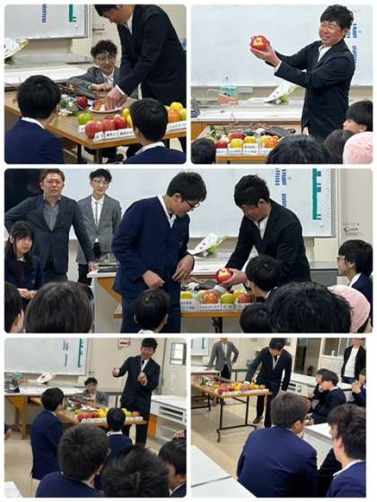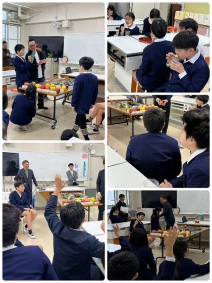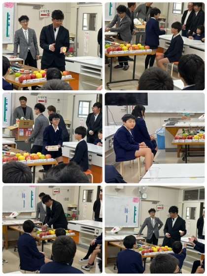 食育の学習で、青森県よりりんごの出前授業に来ていただきました。いろいろな種類がある事に驚かされました。食べてもとても美味しかったようです。