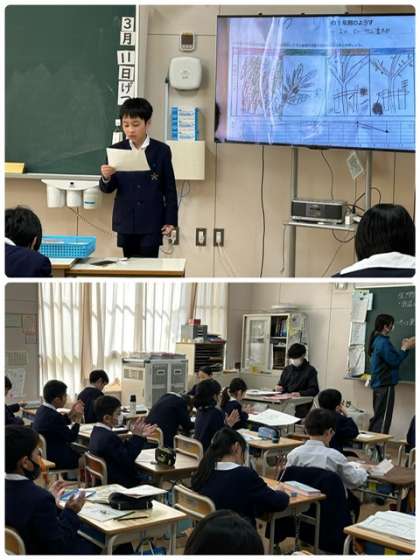 1年間観察をした植物を四季折々の様子を伝えながら発表しました。