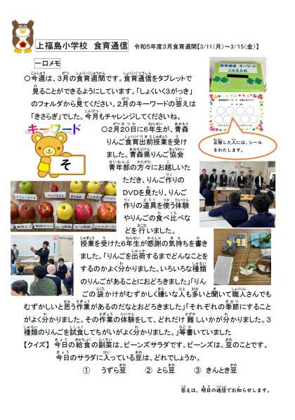 今週は、食育週間です。