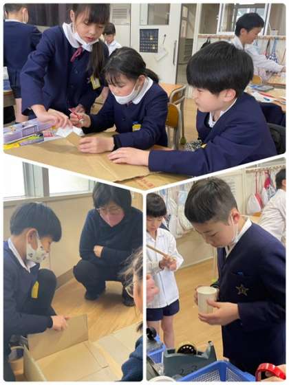 こちらもおもちゃランドです。理科の学習を生かしたおもちゃを作りました。