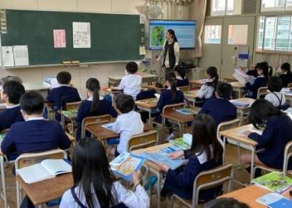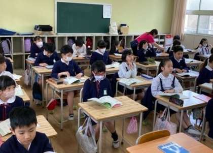 4年生の子どもたちの朝の学習の様子です。先生の話をよく聞いています。
