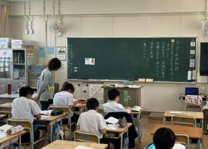 「おにぎり石の伝説」という物語文を音読し、登場人物の「真」とはどういう人物なのかを考えている場面です。はじめて読み取ったところから、学習を進めていくうちにどのように印象が変わるのか楽しみですね。