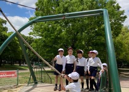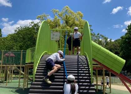 写真は、オリエンテーション終了後、遊具で楽しく遊んでいる様子です。