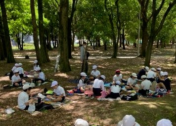 みんな楽しくお弁当を食べています。子どもたちの「おいしい」という声が聞こえてきそうです。