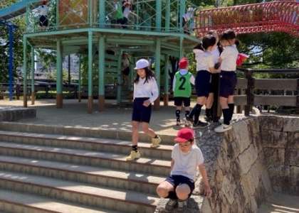 本日3年生は大阪城公園に遠足に行きました。暑いくらいのとても良い天気です。