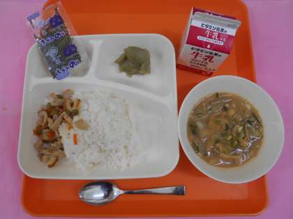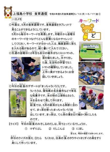 今日の給食は、新茶の季節に合わせた「まっ茶ういろう」です。