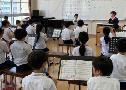 今日の子どもたちの学習の様子です。リコーダーの練習をしたり、グループになって調べ学習をしたりしている様子です。