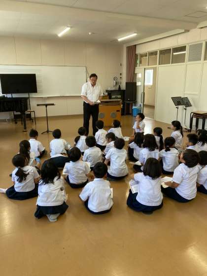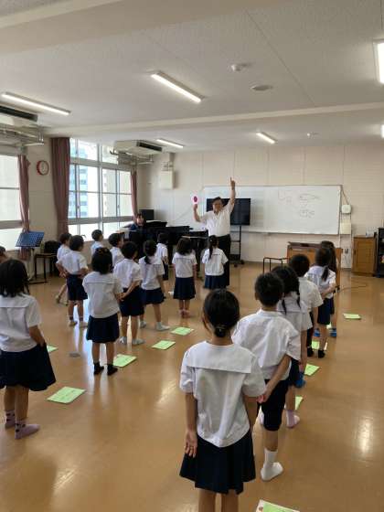 1年生は共通教材「ひのまる」(導入)「校歌」、3年生は 共通教材「ふじさん」を教えていただきました。