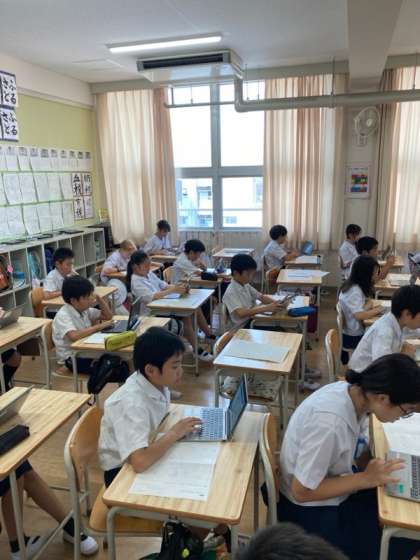 5年生は国語科「心の動きを短歌にあらわそう」を行いました。