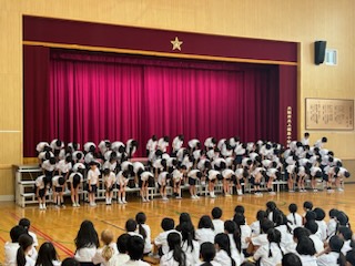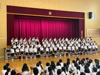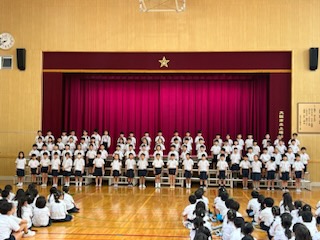 1年生は上福島小学校150周年記念集会で「ともだちになろうよ」を歌いました。