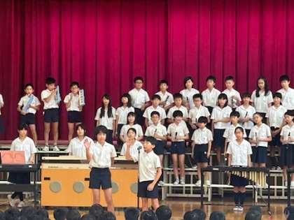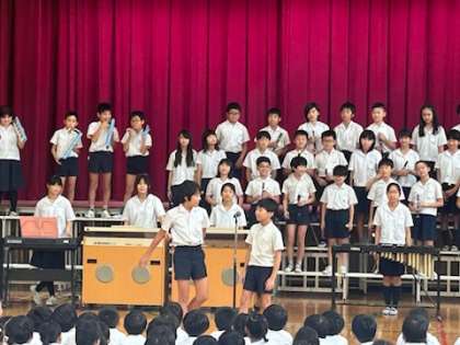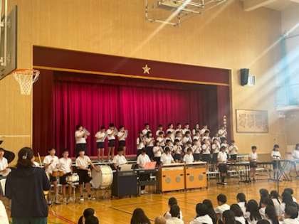 6年生は上福島小学校150周年記念集会で「YOUNG MAN」の合奏を行いました。さすが最高学年、漫才や「YOUNG MAN」の手拍子を交えみんなを大いに盛り上げてくれました。