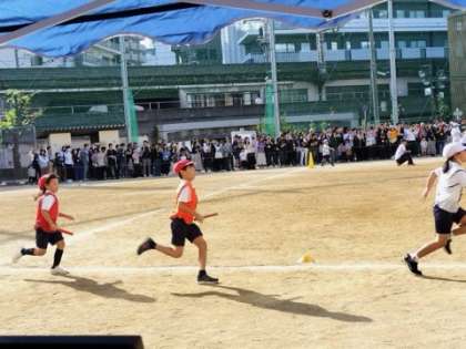 【プログラム4】1年生徒競走「それいけ!1ねんせい」2年生徒競走「安心してください、速いですよ」です。
