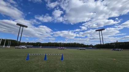 場所をヤンマースタジアムからヤンマーフィールド長居に移動し、海老江東小とともにダブルサッカーを行います。4面もコートがあり、子どもたちも思いっきりボールをけり、楽しんでいます。