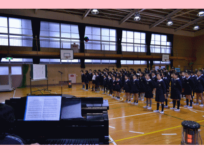 校歌を歌った後、校長先生から、各学年ごとの児童にむけて、3学期の望ましい目標などについてお話がありました。