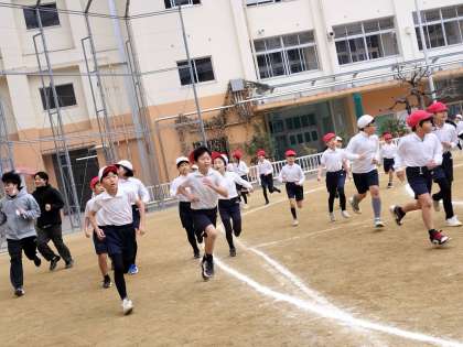 寒い朝ですが、2月10日(月)のかけあし大会にむけて、子どもたちの練習が続いています。