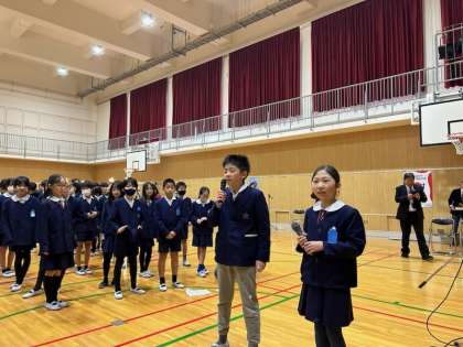 第2部では、5年生の1年間の取り組みの発表とともに、この交流を次年度にも引き継いでいくことをめざして4年生を招待しました。最後に臨時大使にお礼の言葉とプレゼントを渡してボリビアデイを終えました。