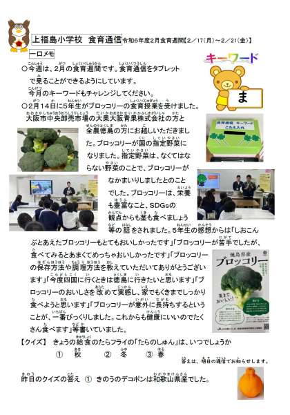 2月14日に5年生がブロッコリー食育授業を受けました。