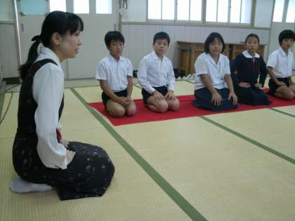 5年生は、今年が初めての体験となり、とても姿勢よく礼儀正しく学習することができました。お茶も上手に点てていました。