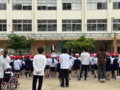 全校朝会で、校長先生からいじめはあってはならないことや、命の大切さについてお話がありました。