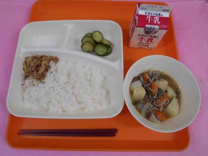 今日の給食は、肉じゃがです。