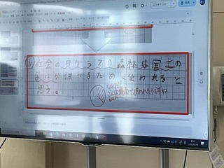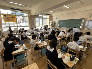 6年1組算数の様子です。熱心に問題に取り組んでいます。毎授業行なっている振り返りでは、他教科と絡めた考えを書いている児童がいました。