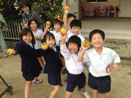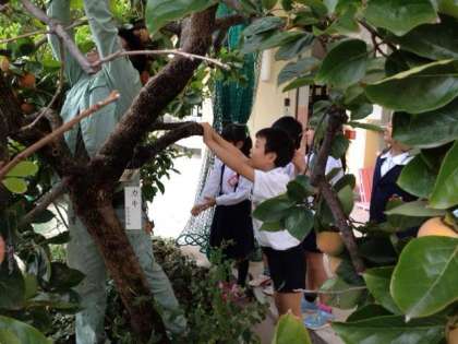 本日、1年生が上福の柿を収穫しました。上福の柿については、毎日食育通信でも紹介されていますので、そちらもご覧ください。自分で摘み取った子もいましたし、管理作業員さんに摘み取ってもらった子もいました。こんな経験ができるのも、上福島小学校のよさですね。
