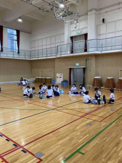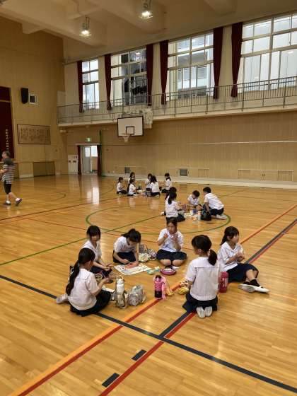 万博行けなかったけど講堂でみんなでお弁当食べています。美味しいな。