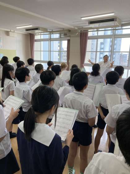 午後からは5年生が「君をのせて」、6年生が「COSMOS」を指導してもらいました。1時間ですごく心に響く合唱になりました。