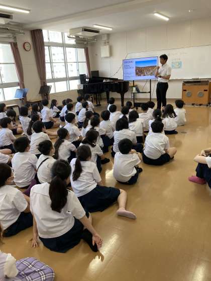 昨年度の5年生からバトンを受け継ぎ、ボリビアに関わる国際交流授業を行いました。お礼に昨日取り組んだ合唱を講師先生に聞いてもらいました。