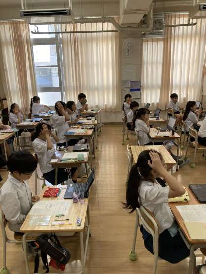 4年生は歯科校医先生と歯科衛生士さんから虫歯にならないようにそして歯を大事にするお話を聞きました。しっかり噛めているかも、自分でチェックしました。