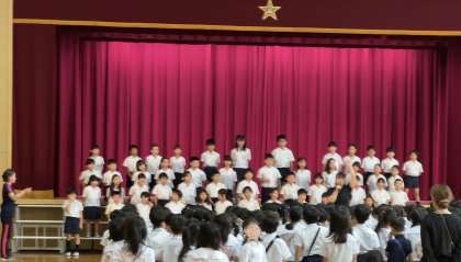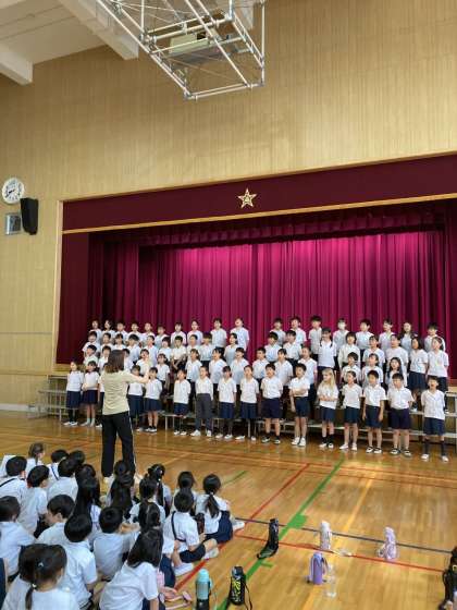 音楽集会では、3年生以上の学年がそれぞれ練習した曲を発表しました。