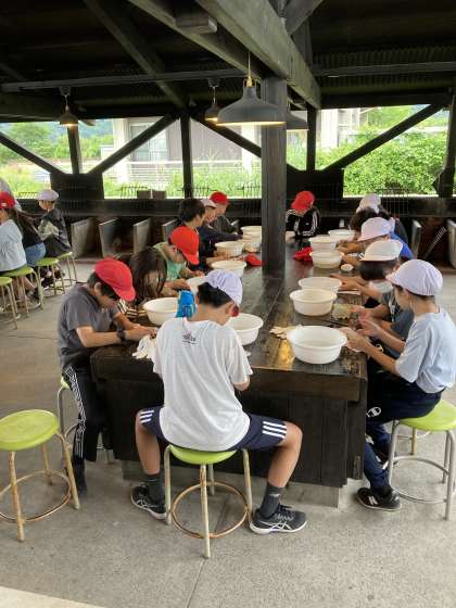 削ることできれいな模様が出てくるので、みんな一生けんめいに削りの作業をしています。