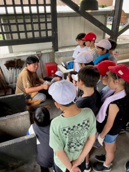窯を担当する子どもたちは、薪の組み方を教えてもらい、