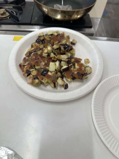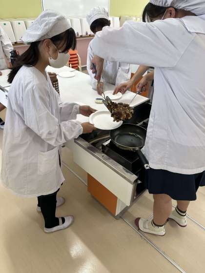 出来上がりを食べた子どもたちは、「おいしい」と言ってパクパク食べていました。また、茄子が苦手な子どもたちも、「これなら食べれる」と言いながら食べていました。
