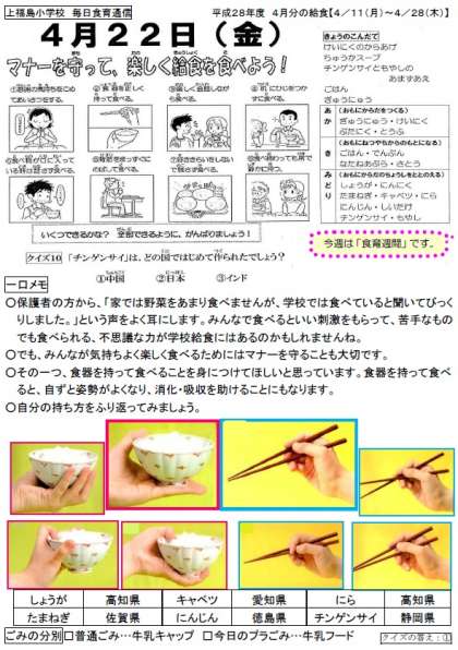 毎日食育通信:自分の持ち方をふり返ってみましょう。