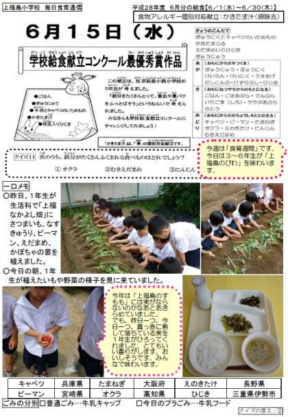 毎日食育通信:1年生が「上福なかよし畑」に行きました。