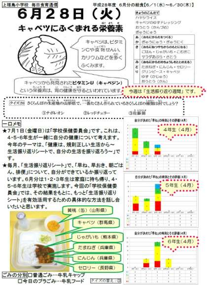 毎日食育通信:「学校保健委員会」では4・5・6年生が一緒に自分の健康について考えます。