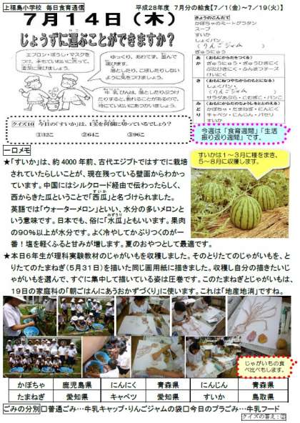 毎日食育通信:6年生がじゃがいもを収穫し、描きました。