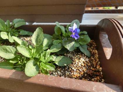 区の種花事業で育てているパンジーとビオラに花が咲き始めています。