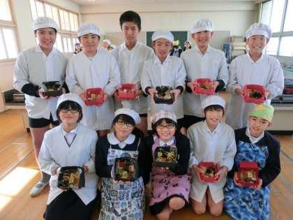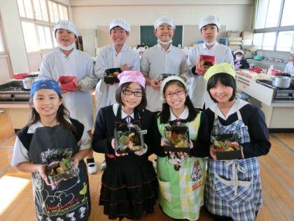 栄養教諭の指導のもと、本格的な味付けや盛り付けを体験しました。