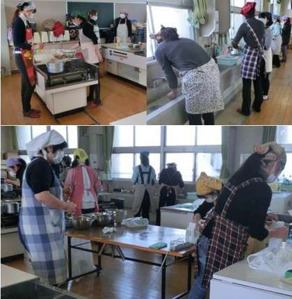 PTAのみなさんには、家庭科室でも下ごしらえをしていただきました。