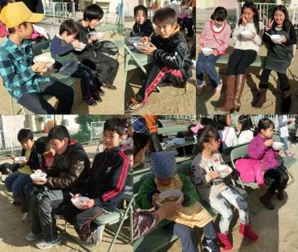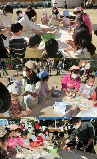 地域の方にご指導いただきながら、みんなでおもちを丸めました。
