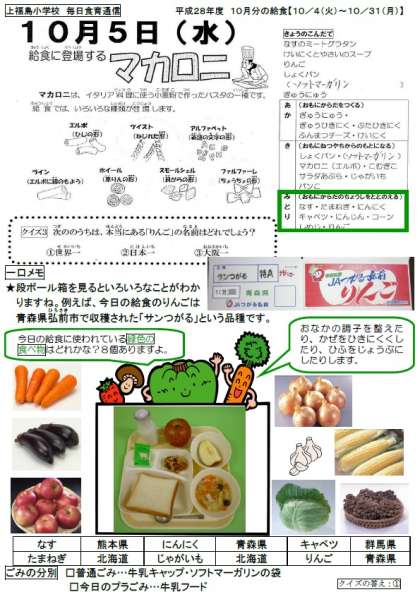 毎日食育通信:緑色の食べ物はどれかな?